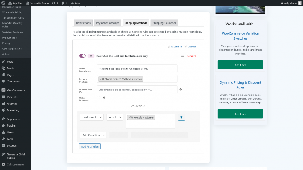 On this demo store we have restricted the local pick to wholesalers only so if you are logged in you will see the flat rate an local pick.