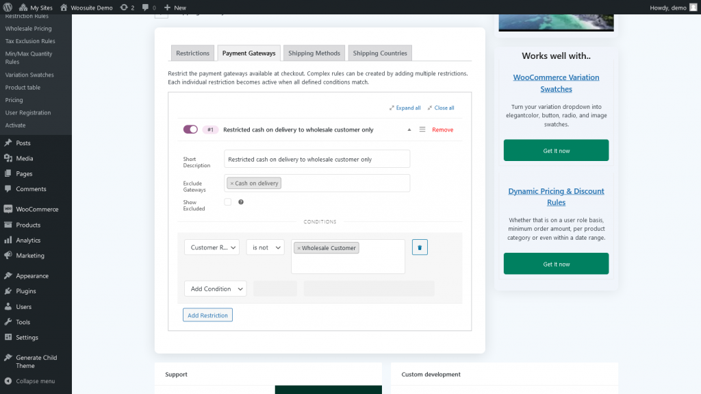 We have restricted cash on delivery to wholesale customer only. You can add a invoice payment gateway and restict it to only wholesale customers.